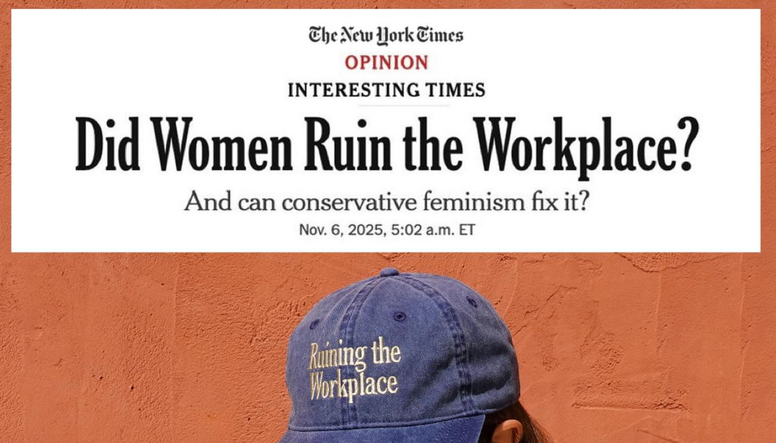 I’ve been losing more and more faith in the New York Times but this discussion entitled ‘Did Liberal Feminism Ruin the Workplace?’ was utterly execrable. The piece uses two female conservative voices to say that giving voice to women has ruined work, citing issues like MeToo. I share it partly because I loved the person who made merch to call out the BS of it all: